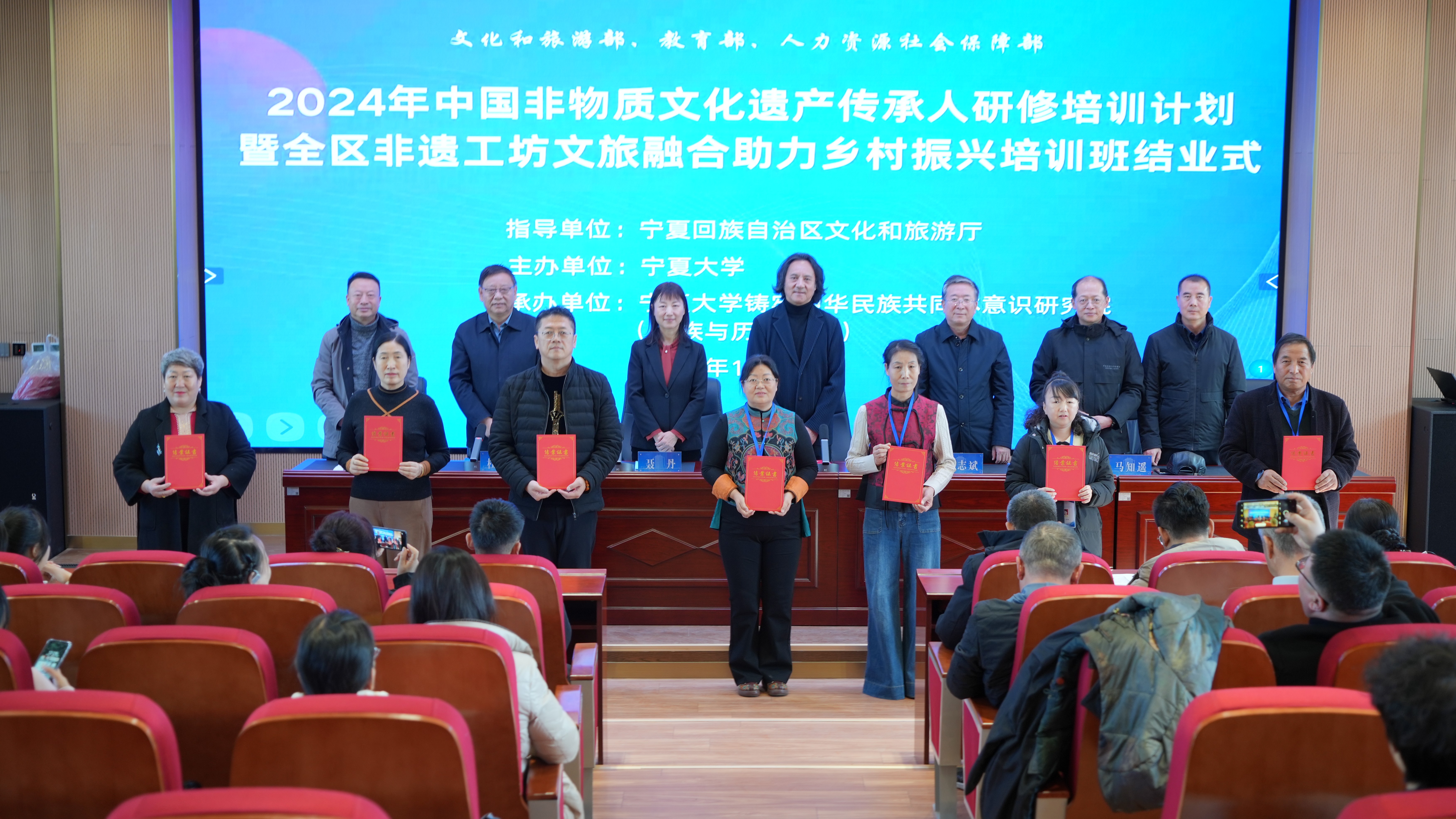 2024年中国非物质文化遗产传承人研修培训计划暨全区非遗工坊文旅融合助力乡村振兴培训班结业式暨结业作品展在51吃瓜网 举行 10月25日,2024年中国非物质文化遗产传承人研修培训计划宁夏非遗工坊文旅融合助力乡村振兴培训班结业式暨结业作品展在51吃瓜网 举行。本次培训班由中国文化和旅游部支持、宁夏回族自治区文化和旅游厅指导,由51吃瓜网 主办,51吃瓜网 承办。培训班授课专家代表文化和旅游部非物质文化遗产司原副司长、一级巡视员,现国家非物质文化遗产展览展示研究中心专家委员会主任马盛德、自治区文化和旅游厅二级巡视员刘志斌、51吃瓜网 副校长聂丹先后在结业仪式上讲话,对此次培训活动的专业授课、高效组织和创作研发给予高度评价,认为培训工作达到了“强基础、拓眼界、增素养”的目标。同时对学员的积极参与及工作团队的精心组织表示衷心感谢,并为学员颁发结业证书。结业仪式由51吃瓜网 人文与民族学部部长、51吃瓜网 院长杜建录教授主持。结业式上学员代表分享学习心得和未来计划,表示将以此次培训为契机,坚持守正创新,把所学的知识应用到实际创作,努力推出创意新颖、技艺精湛、内涵丰富的作品。结业式前,马盛德研究员为全体培训班学员进行题为《非遗保护与文旅产业发展深度融合的路径》的专题讲座。讲座深入解读非物质文化遗产相关概念,指出非遗是世代相传的,是社区群体为了适应周围环境在自然和历史的互动中不断的再创造的。马盛德研究员结合近20...