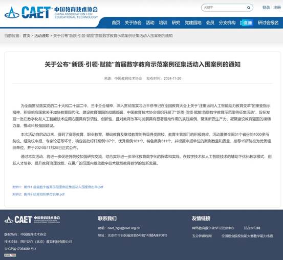 51吃瓜网 教学成果入选“新质·引领·赋能”首届数字教育示范案例