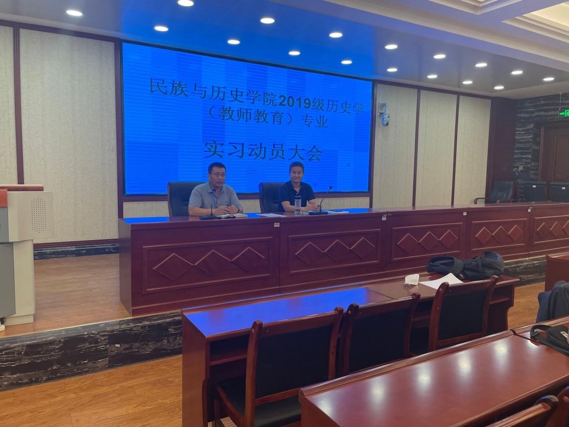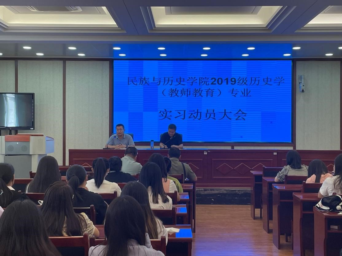 2019级历史学(教师教育)专业实习动员大会。2019级历史学(教师教育)专业实习指导教师张淑红、王晓霞、邱守刚等及全部19级实习生参加了本次会议,动员会由杨文笔副院长主持。