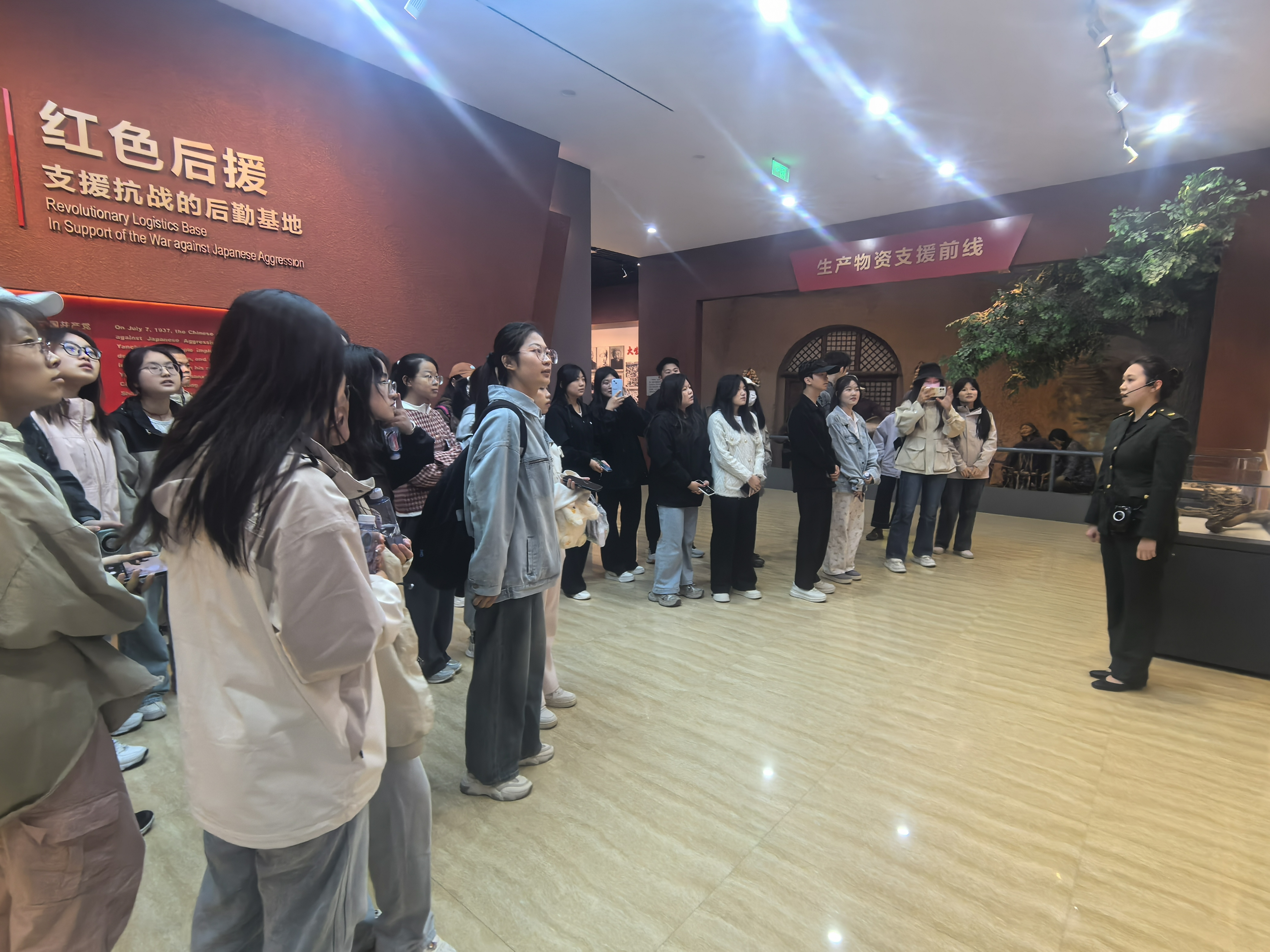 教学科研实践实习基地盐池革命烈士纪念馆。首先,同学们在老师的带领下,向革命先烈敬献了花篮,缅怀先烈,传承红色基因。之后,同学们跟着讲解员的脚步,通过观看珍贵的历史文物、图片和文献资料,深入了解了盐池光荣的革命史和珍贵的革命文物。在二楼展厅内,红领巾小小讲解员们还为同学们表演了根据1941年《解放日报》刊登三五九旅四支队在盐池挑灯连夜打盐的故事创编的原创红色讲解剧《盐耙耙命根根盐耙耙》,让同学们沉浸式学习了抗日战争时期边区各族军民在中国共产党的领导下,团结一心、支援前线的光辉岁月。生动而感人表演,让在场的同学们深受感动,为小小讲解员们精彩的表演与革命烈士的革命精神发出了雷鸣般的掌声。