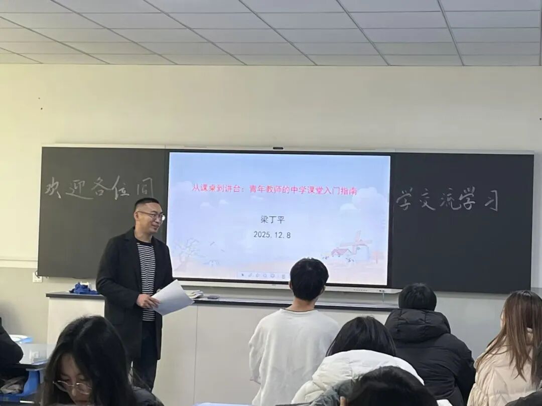 12月8日上午,附中梁丁平老师开展题为《从“课桌”到“讲台”:青年教师的中学课堂入门指南》的讲座,以“学生喜欢什么样的课”为引,启发大家完成从学生到教师的思维转变,并针对新教师常见困境提出实用建议。