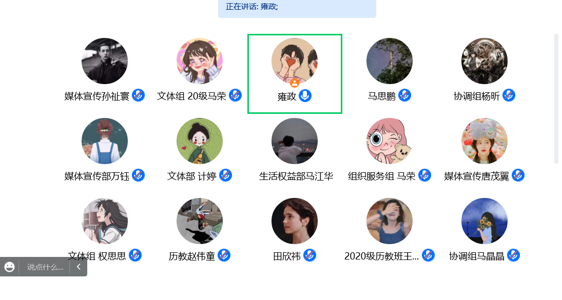 同学们积极分享了自身关于党的二十大召开的感想与体悟:胡杨名回顾了党十年来的彪炳史册的成就,并以“为有牺牲多壮志,敢教日月换新天”这句诗说明党始终坚持初心使命和革命精神。杨昕则从社会主义发展史的角度,回顾了党的创造性成就,她提到:“一代人有一代人的长征,一代有一代人的使命,我们这一代青年应当扛起时代使命,为建设祖国继续奋斗。”