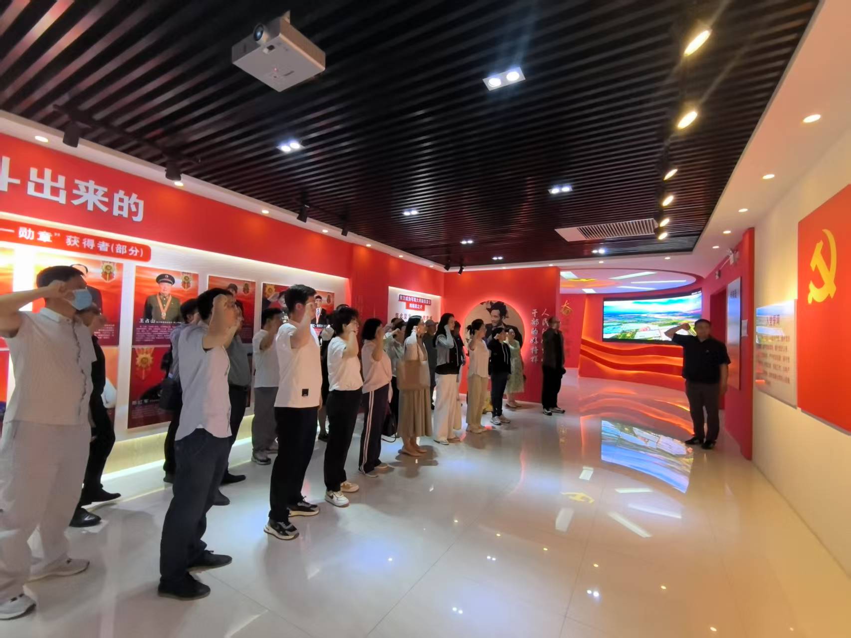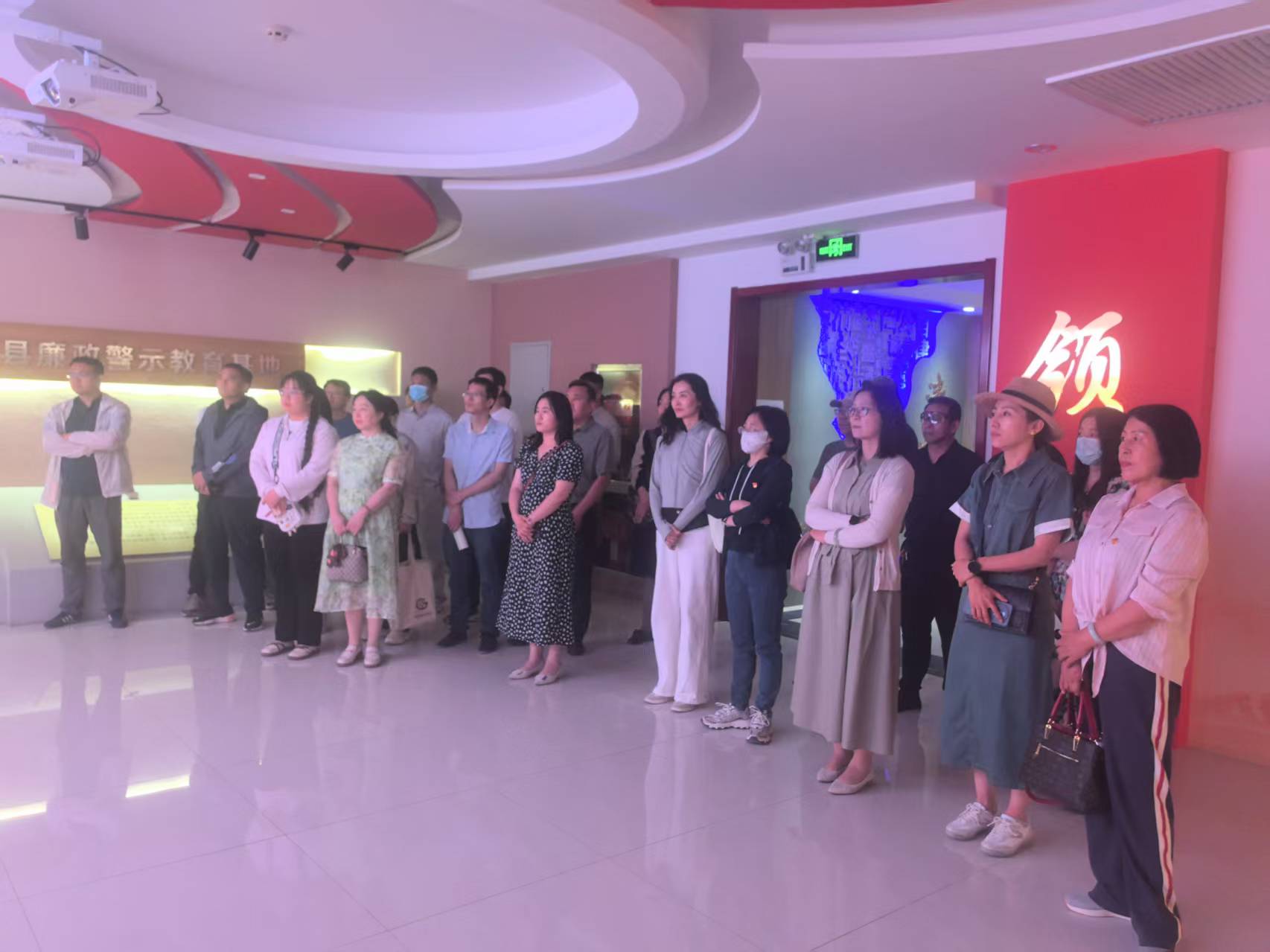贺兰县廉政警示教育基地,在全体党员在讲解员的引导下,依次参观了教育基地“领航”“镜鉴”“笃行”主题展厅,领航厅通过多媒体影视、图文展板生动再现了党的纪律建设发展脉络,使党员们深入了解了党的十八大以来,尤其是中央八项规定实施以来全面从严治党和反腐败斗争的显著成效。在镜鉴厅,近年来宁夏查处的一件件腐败案例和忏悔视频,让党员教师深刻认识到先前的青年英才、优秀干部、先进工作者由于漠视纪律,小节失守到最后沦为阶下囚的前车之鉴,让广大党员们接受了一堂触动灵魂的廉政警示教育课。笃行厅内,袁隆平、张桂梅、王占山、王兰花等“共和国勋章”和“七一勋章”获得者的先进事迹,进一步激发了党员教师廉洁从教,“为党育人、为国育才”,争做“四有好老师”的动力。廉政警示教育基地参观学习结束后,全体党员在党旗下重温入党誓词。