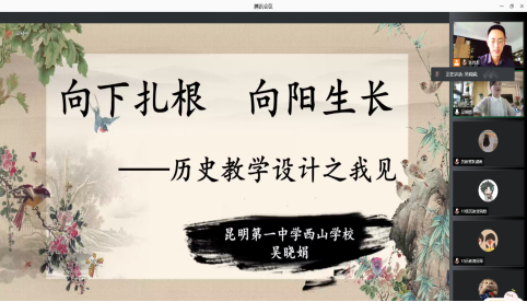 于2022年9月26日上午进行了“历史名师面对面”系列讲座第五讲。部分历史学(师范)本科生和学科教学(历史)全体研究生,参与了线上腾讯讲座。本次讲座邀请了云南昆明第一中学西山学校教学名师吴晓娟主讲,主题为“向下扎根,向阳生长——历史教学设计之我见”,活动由历史系副主任张启龙老师主持。