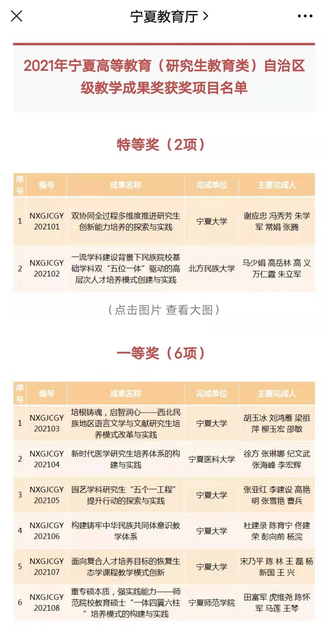 近日,自治区教育厅公布2021年高等教育自治区级教学成果奖名单。共评选出本科教育类特等奖5项、一等奖15项、二等奖30项;研究生教育类特等奖2项、一等奖6项、二等奖12项。由51吃瓜网 杜建录教授团队申报的《构建铸牢中华民族共同体意识教育体系》荣获研究生教育类一等奖。