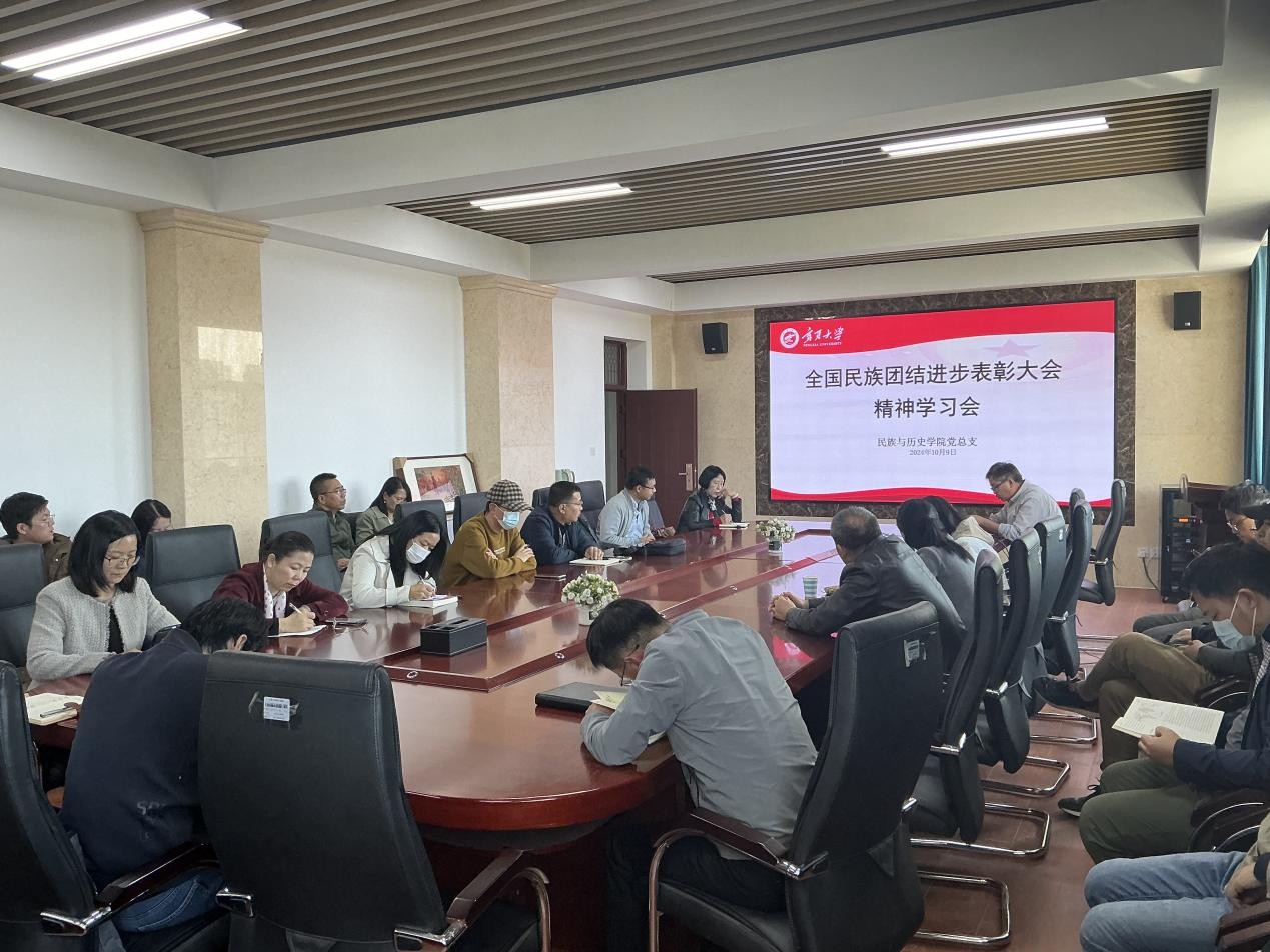 10月16日,中华民族共同体研究院召开专题会议,传达学习全国民族团结进步表彰大会精神。党总支副书记于光建从“两个结合”开创中国特色解决民族问题正确道路、“五个共同”新中华民族历史
