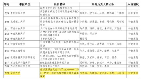申报的《让西夏历史文化“活”起来——“冷门绝学”通识课程的数字教育改革探索》成功入选特色案例。