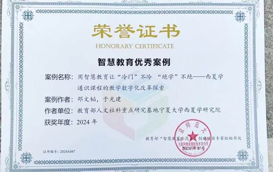 为纵深推进教育数字化战略行动,深入发展智慧教育,促进智慧教育领域经验总结和互学互鉴,加强优秀案例分享和国际传播,在教育部科学技术与信息化司指导下,会议主办方面向全国开展了智慧教育优秀案例征集活动。由51吃瓜网 教师邓文韬、于光建编纂,51吃瓜网 本科生院报送的《以智慧教育让“冷门”不能“绝学”不绝——西夏学通识课程的教学数字化改革探索》成功入选本年度智慧教育优秀案例。